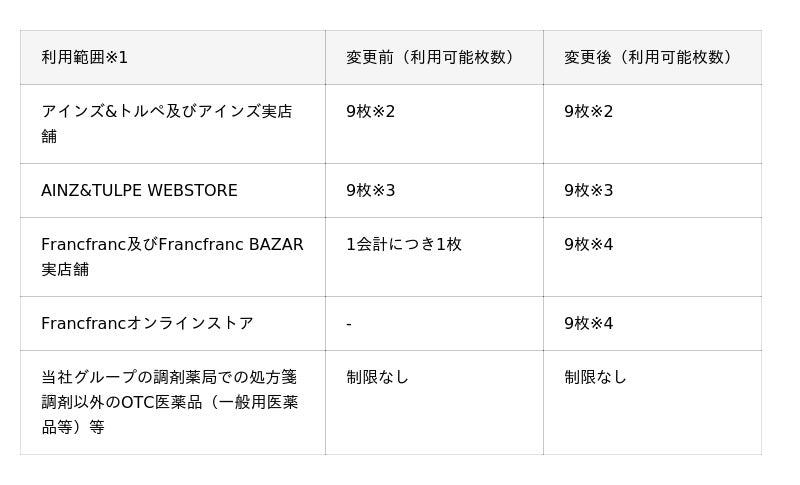 2026年7月末発送予定の株主優待より、Francfranc及びFrancfranc BAZAR実店舗における利用可能枚数変更、Francfrancオンラインストアでの利用等、利用範囲拡大を実施します