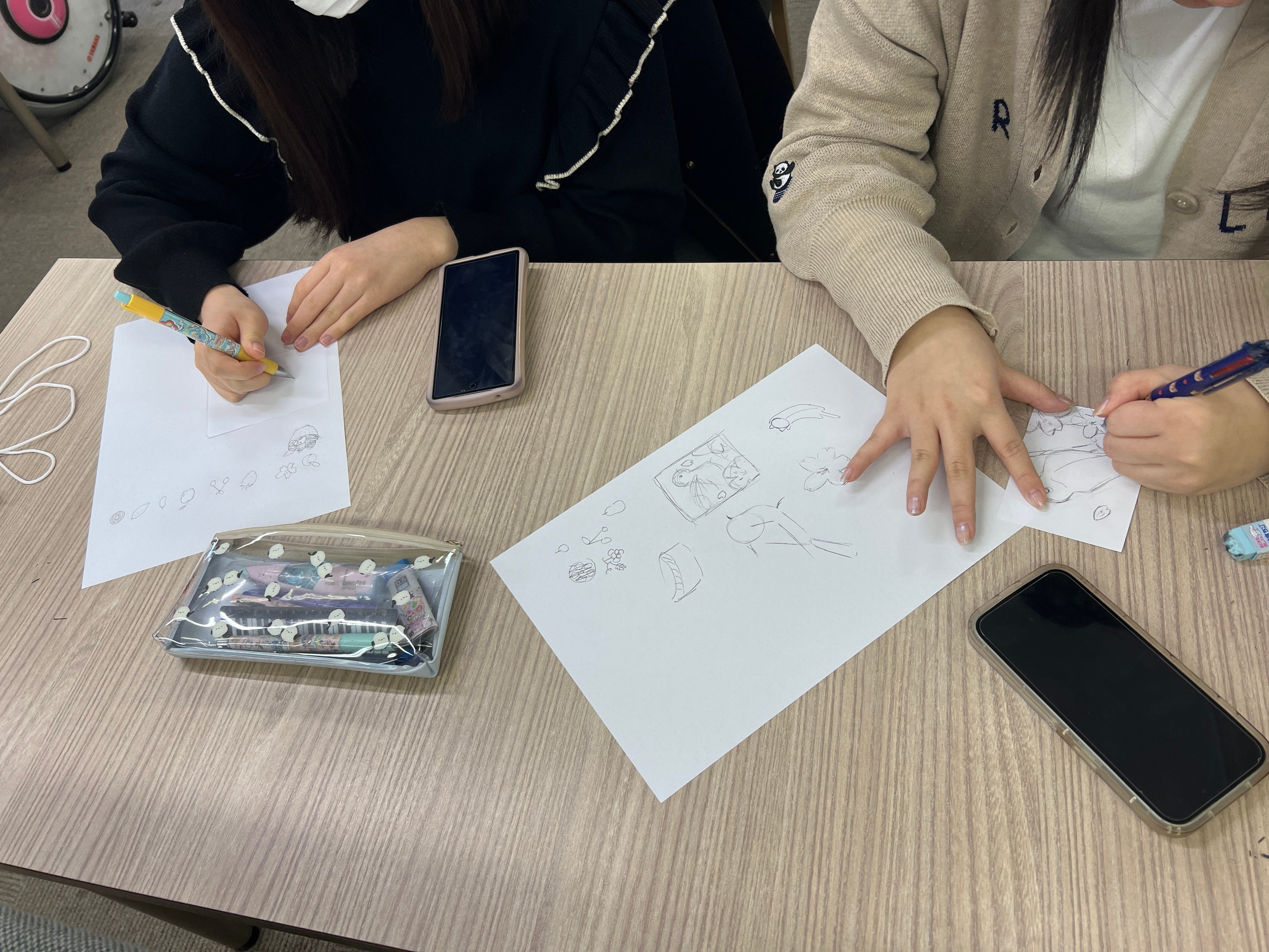 下絵を描く生徒達