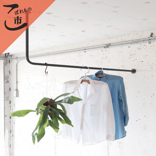 【20%OFF】 錆びないL字型天吊りハンガーバー(黒)