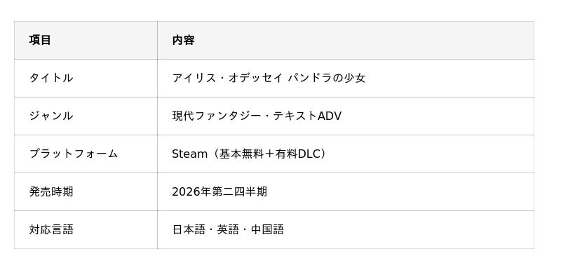 株式会社フロンティアワークスは、自社ゲームブランド「FW Games」にてプロモーション協力を行っております合同会社イースニッドの新作ADVゲーム『アイリス・オデッセイ パンドラの少女』のエンドロールキャンペーンの実施をお知らせいたします。