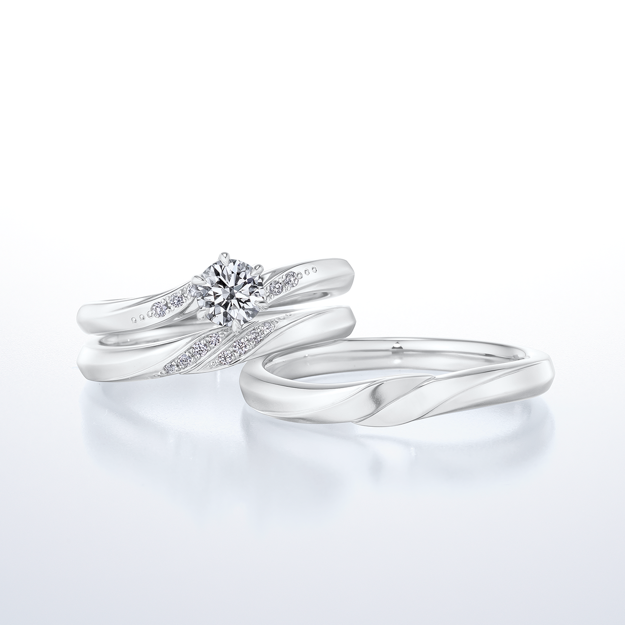 婚約指輪(エンゲージリング)と結婚指輪(マリッジリング)を重ねてつける「セットリング」も業界の先駆けとなっています。なめらかな着用感、サイドからみた美しさも細やかな手仕事がなすさらなる特徴です。