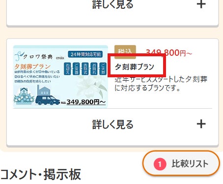 「葬儀の口コミ」は、消費者と葬儀社が直接やり取りできるプラットフォームです。夕刻葬を希望する消費者は、気になる葬儀社のプランを比較・検討したうえで、費用や流れについて確認できます。