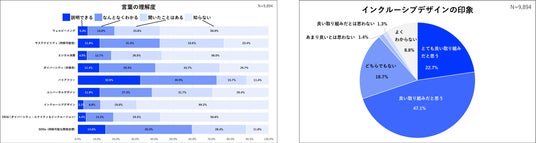(1)認知と受容:「インクルーシブデザイン」の言葉の内容まで理解している層は約12%に留まるが、コンセプトを説明すると約7割が「良い取り組み」と共感。