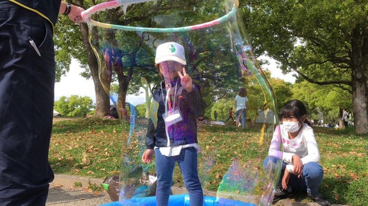 シャボン玉づくり海風が吹き抜けるSENNAN LONG PARKならではのシャボン玉体験。