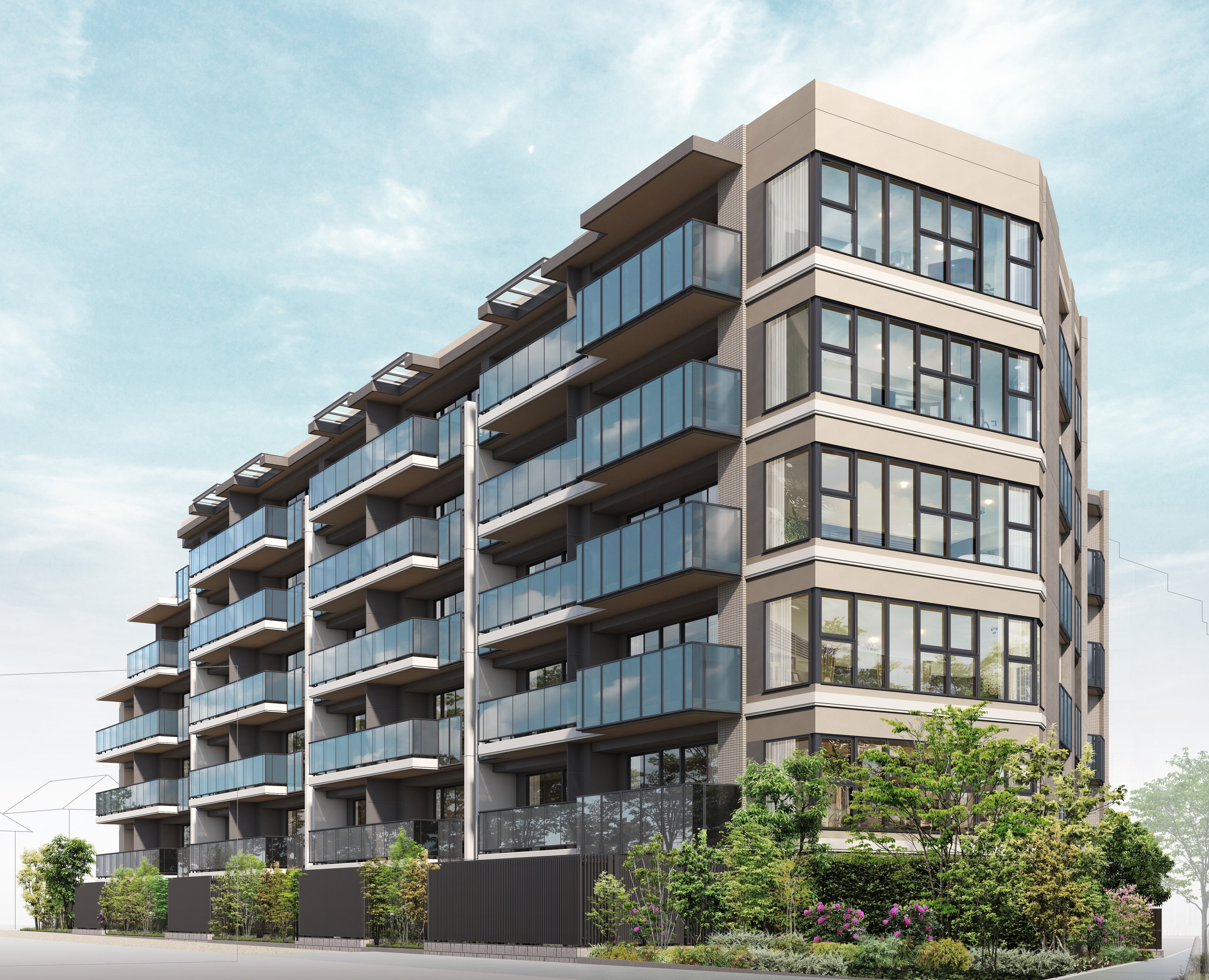 「北澤分譲地の品位を継ぐレジデンス」をコンセプトに、京王線初の分譲地(※2)である「北澤分譲地」の街並みを象徴する桜や、「北澤分譲地」の邸宅に多く使用された大谷石など、周辺地域の歴史や景観を継承するデザインとしております。さらに、「ZEH-M Oriented」を採用し、「低炭素建築物認定」を取得(予定)するなど、快適性能・省エネ性能を高め、経済的で環境に配慮した物件です。また、本物件は「東京こどもすくすく住宅認定」を取得しており、子育て世帯が安全に、快適に、そして安心して暮らせるよう配慮しています。