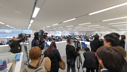 移転当日、メディアのみなさんにお集まりいただき、代表取締役 社長執行役員 CEO 沖津雅浩より移転にあたっての挨拶をしました。