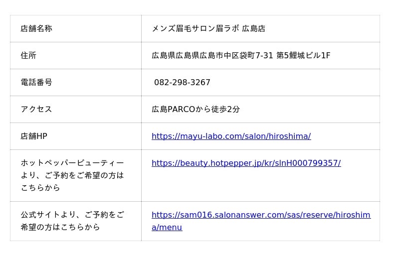 「メンズ眉毛サロン眉ラボ 広島店」は、広島PARCOから徒歩2分とアクセスしやすい場所にあります。