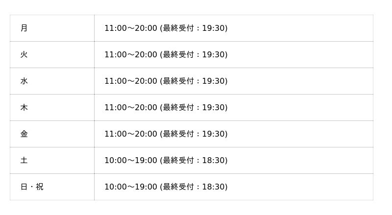 メンズ眉毛サロン 眉ラボ 川崎店 の営業時間は以下の通りです。