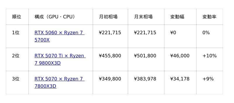 ■ 構成(GPU+CPU)別の価格変動詳細