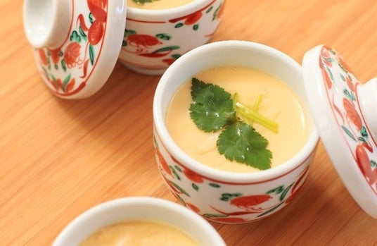 とろける湯葉と海鮮の旨味香る茶碗蒸し 熱々でお召し上がりください。