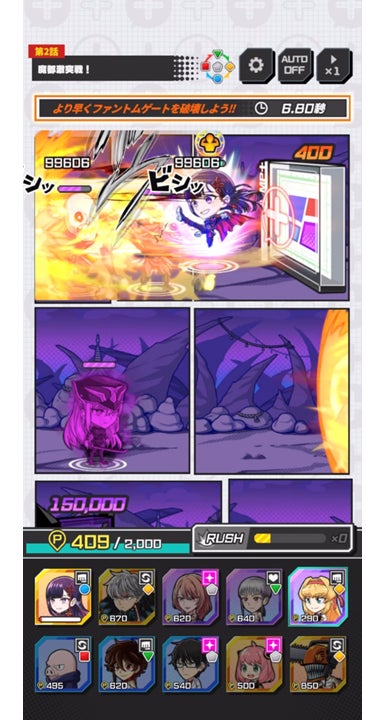 ゲームジャンルは漫画コマの中で前線を押し上げていく、今までにない「漫画コマ型タワーオフェンスゲーム」となっており、ゲームを普段遊ばない方も直感的に楽しむことができます。