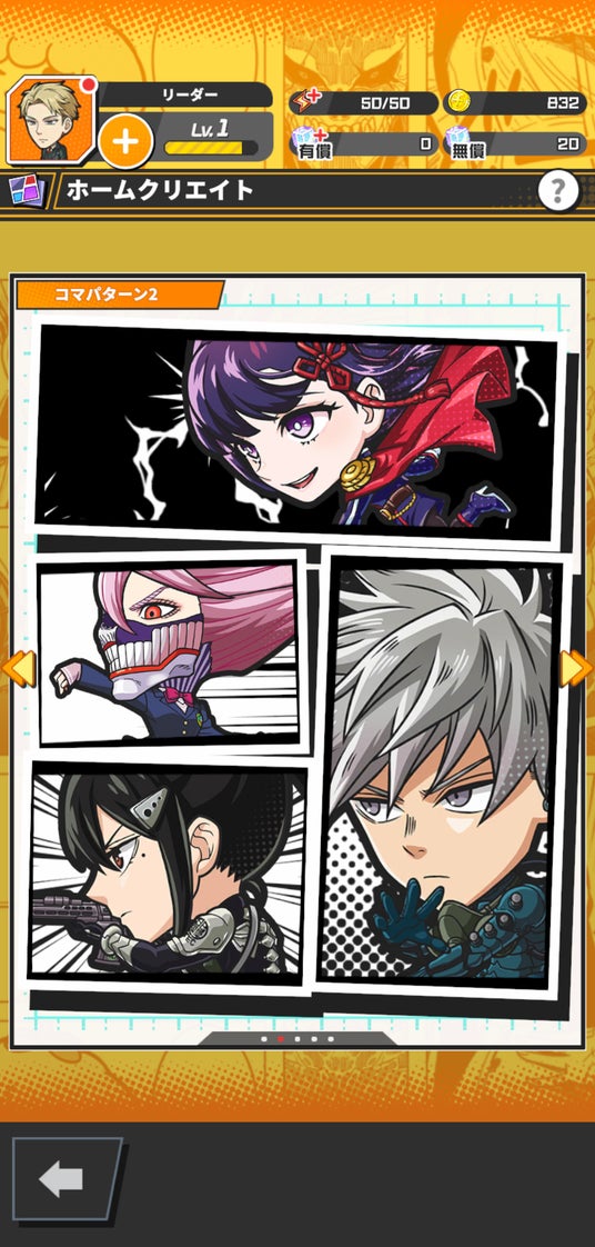 「ホームクリエイト」は所持している好きなキャラをコマ割りの中に配置できる機能だ。