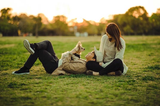 ・犬と夫婦の写真