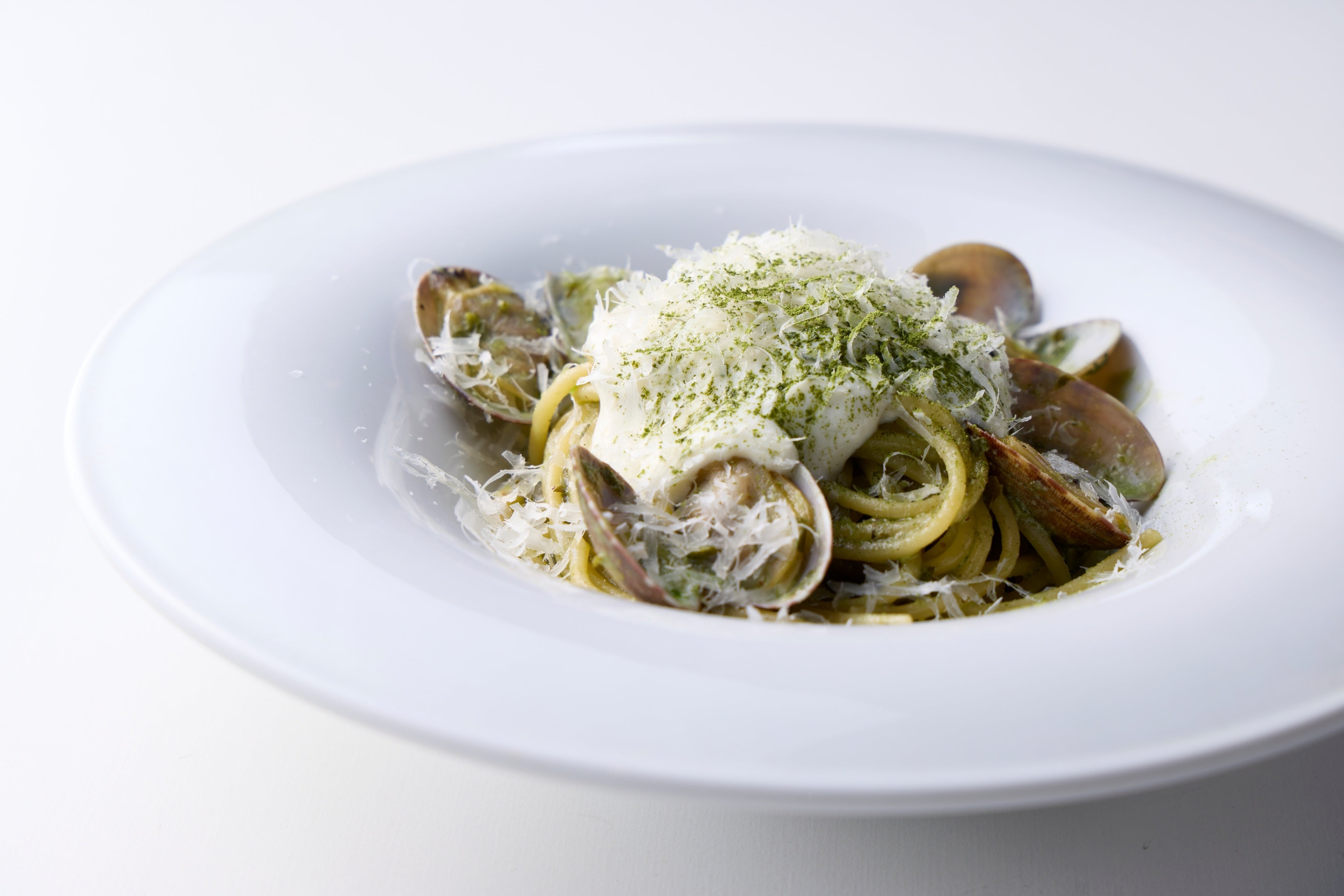近江茶葉と豆腐クリームのボンゴレ スパゲティ