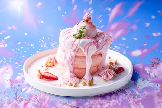 「FUTURE TRAIN」でお子様から大人の方まで大人気の「スフレパンケーキ」も桜色に!ふるふる震える柔らかいパンケーキの上に、桜の塩漬けパウダーを合わせた甘さ控えめの生クリームと、いちご風味マスカルポーネアイスクリームをたっぷりと。桜の塩漬けが醸し出す甘じょっぱさがなんだかクセになってしまう、無限ループ確定のやみつき系パンケーキです。