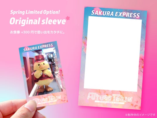 「SAKURA EXPRESS」開催期間中、オリジナルデザインスリーブ付きの撮影をお楽しみいただけるオプションをご用意いたしました(お食事+300円)。