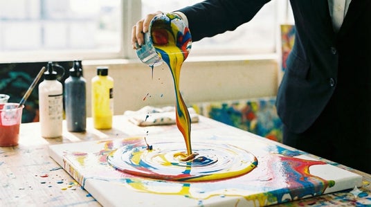 「AI時代に求められるアート思考、正解がない対象に立ち向かう」をテーマに掲げ、親子共同でアートを制作。完成した作品を持ち帰り飾ることで、初心を忘れずに日々を送る指針となります。キャンバスへ多種多様な色彩を垂らし、予測不能な軌跡を描き出す本手法は、まさに「正解なき未来」を象徴します。
