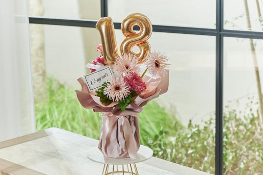 ▲ナンバーバルーン付きブーケ 数字1桁:6,600円/数字2桁:7,700円