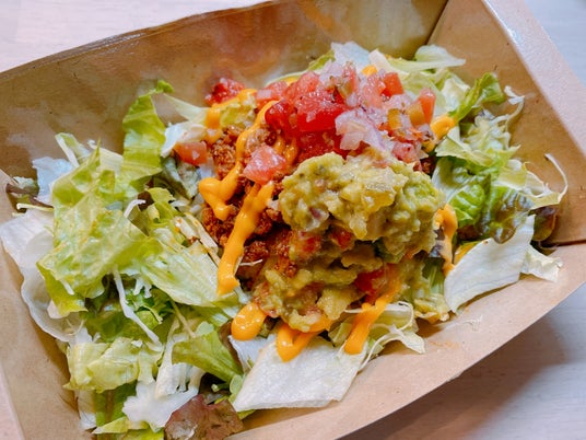 オリジナルアレンジした世界のローカルソウルフードが豊富にラインナップ。看板メニューは、スパイスとトマトで仕上げたコク深いタコミートとピリッと刺激的なフレッシュサルサがウリのタコライスにワッカモーレとチェダーチーズをトッピングした「タコデルソル」。
