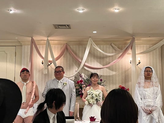 佐橋劇団によるコンプライアンスに引っかかる結婚披露宴が3月15日(日)渋谷区アンジェパティオにて開催された。