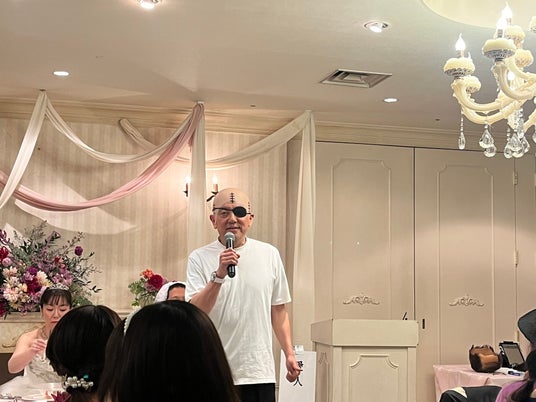 結婚披露宴には余興が付き物、トップバッターは今回主催者のガンリキ佐橋が