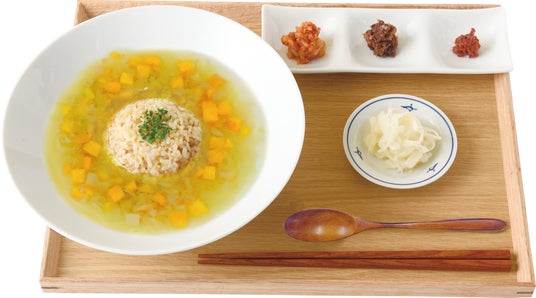 さらに2025年、このスープをベースに有機玄米と組み合せた「スープごはん」メニューを開発しました。玄米はビタミン・ミネラル・食物繊維が豊富で、血糖値の上昇がゆるやかな「完全栄養食」です。