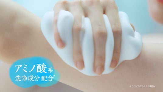 CMは、「乾燥肌にビオレ ザ ボディ」という松下さんの掛け声から始まります。「肌のうるおい逃がさない」という松下さんの力強いメッセージや、松本さんがアミノ酸系洗浄成分配合*1の泡で”まさつレス”に腕を洗っている様子を通して、乾燥肌向けのボディウォッシュであることを表現。二人の先導によって、様々な世代の人々が “まさつレスな手のひら洗い”を楽しむ様子を描いたCMです。*1 ココイルグルタミン酸Na