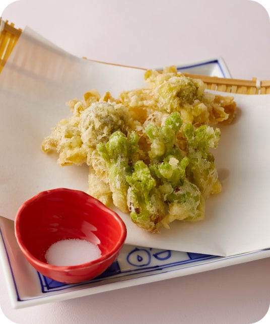 春の到来を告げる、たらの芽など、カラッと揚げた季節限定品。