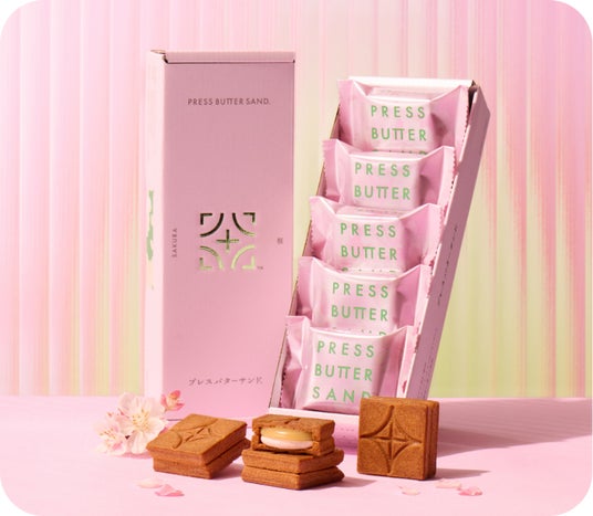桜が香るクッキーで、桜バタークリーム&定番バターキャラメルをサンド。