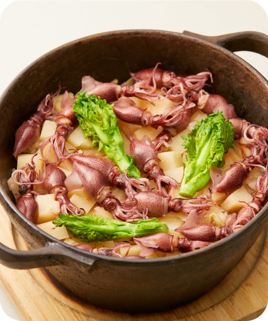 その日のおすすめ野菜と自社農園の筍、ほたるいかと一緒に。