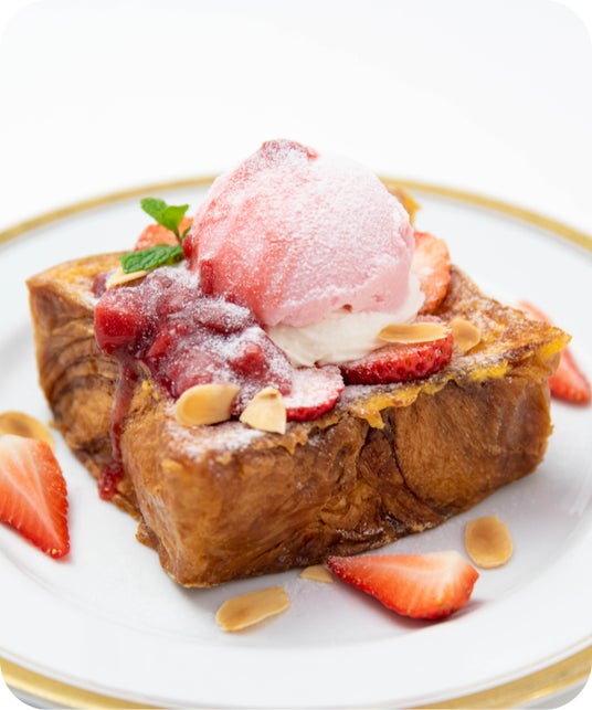 外はパリッと香ばしく、中はとろりと焼いたデニッシュに、京都‧八幡の新鮮な苺を贅沢に。