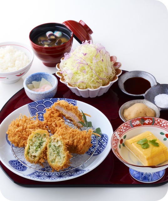 あさりと九条ねぎの豆乳クリームコロッケとひれかつ膳