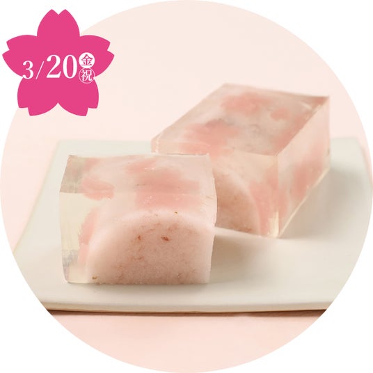 桜の塩漬け入り餅⽺羹に琥珀羹、花景⾊をうつしました。