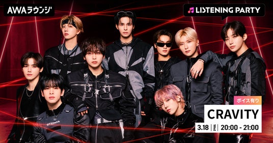 AWA株式会社(本社:東京都港区、代表取締役CEO:冨樫晃己)が運営する、サブスクリプション型(定額制)音楽ストリーミングサービス「AWA(アワ)」は、2026年3月18日(水) 20:00~21:00の1時間に渡り、無料で誰でも参加できるオンライン空間「ラウンジ」で、CRAVITY特集のリスニングパーティーを開催いたします。
