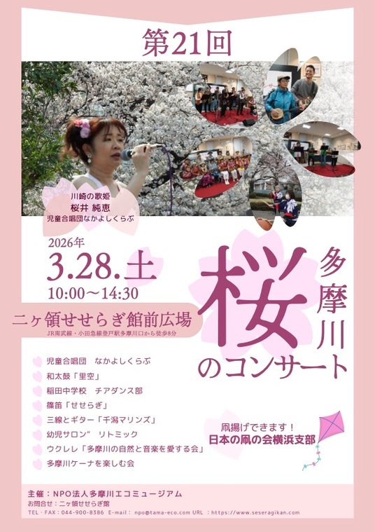 また、二ヶ領用水など桜の名所では、季節を盛り上げる地域の恒例イベントも数々予定されています。