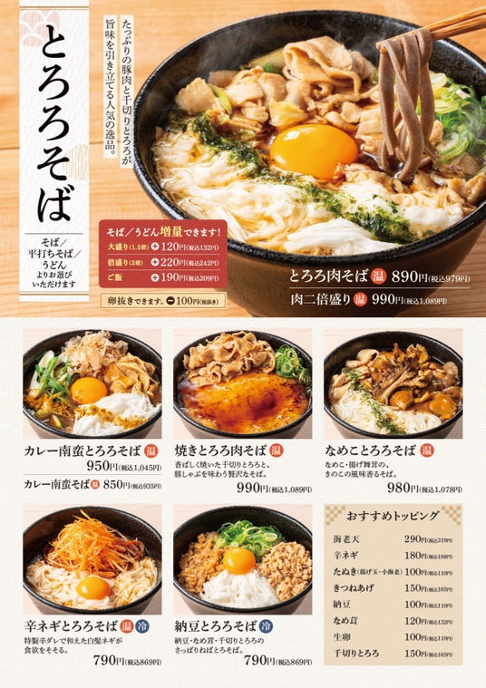 とんかつ専門店「かつや」などを展開するアークランドサービスホールディングス株式会社の子会社で、「肉めし岡もと」などを運営する株式会社トビラダイニング(本社:東京都千代田区/代表:布施 裕康)は、とろろそば専門店「東京とろろそば」にて期間限定で「梅とろろそば」を2026年3月18日(水)より販売開始いたします。