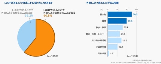 加えて、移動に際し「マイクロモビリティ(LUUP)を選んだ理由」として、「時間を自由に使えるから」の回答が約5割、「マイクロモビリティ(LUUP)があることで外出しようと思ったことがある」利用者は約6割、「マイクロモビリティ(LUUPのポートが近くに)があることで目的地を決めたことがある」利用者は約4割にのぼるなど、マイクロモビリティのポート設置が、施設の集客圏拡大にも寄与する可能性があることが明らかになりました。
