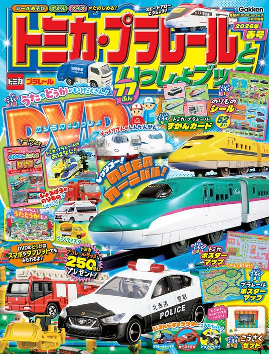 ダイキャスト製ミニカー「トミカ」と鉄道玩具「プラレール」(発売元:株式会社タカラトミー)など、のりものの情報たっぷりのDVD付きマガジン『トミカ・プラレールといっしょブック2026年春号』。前号からページ数を増やし、さらにパワーアップした付録&本誌の内容をご紹介します。
