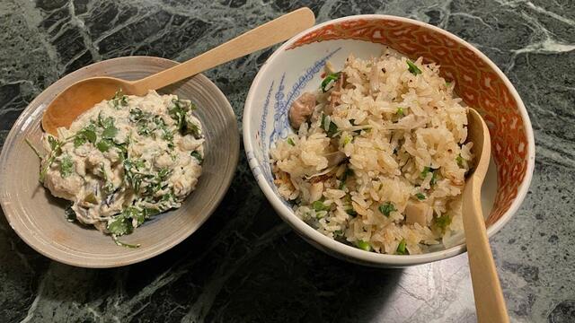 炊き込みご飯(ごぼう、鶏肉、蓮根、菜の花)、