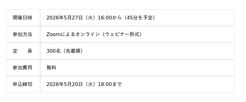 ※お申し込み後に当日参加用のURLを、開催日翌日以降にアーカイブURLをメールにてお送りいたします。