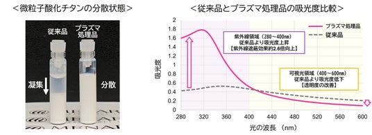 3.液面プラズマ処理「微粒子酸化チタン水分散体」は、紫外線遮蔽効果が約2.6倍*アップ