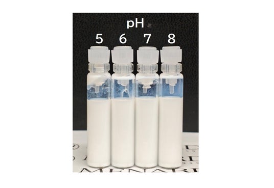 液面プラズマ技術によって今回開発した微粒子酸化チタン水分散体は、弱酸性から弱アルカリ性までの幅広いpH領域で安定した分散状態を維持することを確認しました(図3)。これにより、従来は配合が難しかった水性製剤を含め、さまざまな製剤への応用が可能となりました。