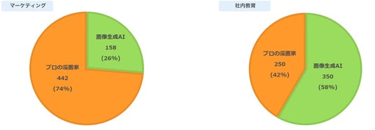 「自社のマーケティングや社内教育でマンガを活用する場合、AIマンガとプロの漫画家どちらを使いたいですか?」という質問に対し、マーケティングについてはプロの漫画家が442票と多数を占めました。一方で、社内教育については画像生成AIが350票と半数以上となりました。