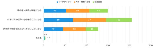 また、「著作権・契約が明確だから」の回答も合計で149票となっており、AI生成物に対する権利関係に敏感なビジネスマンも多くいることが伺えます。