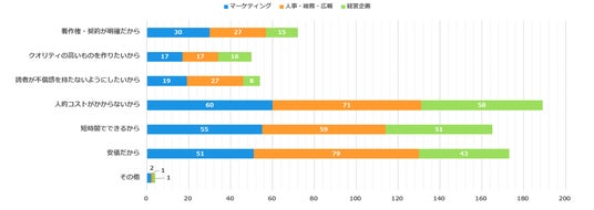 プロの漫画家を選んだ理由としては、「クオリティが高いものを作りたいから」の回答がマーケティング、人事・総務・広報、経営企画の3部門全てで最多となりました。バックオフィス層もクオリティを重視しており、AIによる平均的な出来栄えよりも、ターゲットの心に響くコンテンツを期待していることがわかります。