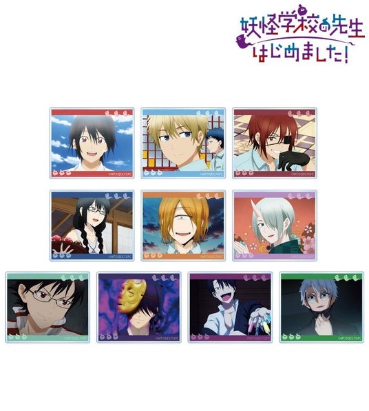 安倍晴明、佐野 命、泥田耕太郎、座敷紅子、入道連助、神酒凜太郎、秦中飯綱、学園長、たかはし明、たかはし暗の印象的なシーンをアクリルスタンドに仕上げました。