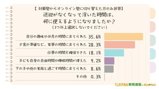 【対面塾時代の送迎「趣味・休息の時間に転換」35.6%で最多】オンライン塾切り替えで「子供本人に還元」の声も