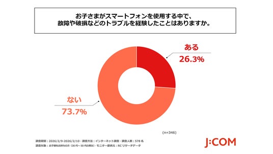 春の新生活シーズンはスマートフォンデビューが活発になる時期ですが、お子さまのスマートフォン利用には故障のリスクが伴います。スマートフォン端末の価格高騰と長引く物価高により、家計におけるスマートフォンの維持管理は重要な課題となっており、不意の事故による高額な修理費用は、家計に深刻なダメージを与える要因となり得ます。 そこで、J:COMは、お子さまを持つ保護者を対象に「子どもの最新スマホ事情2026」に関する調査を実施しました。
