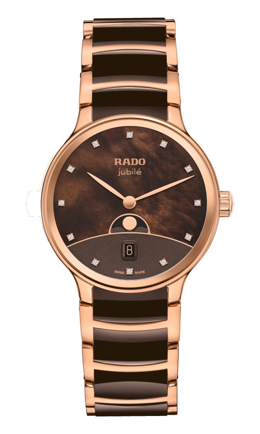ブラウンマザーオブパール、ローズゴールド プリントのRadoおよびJubileのロゴ