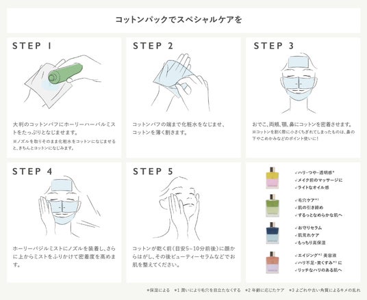 たくさん日差しを浴びたあとは、アースマスクとホーリーハーバルミストのW使いがおすすめ。